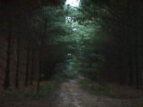 The path to the lake was lined with tall pine trees. The ground was